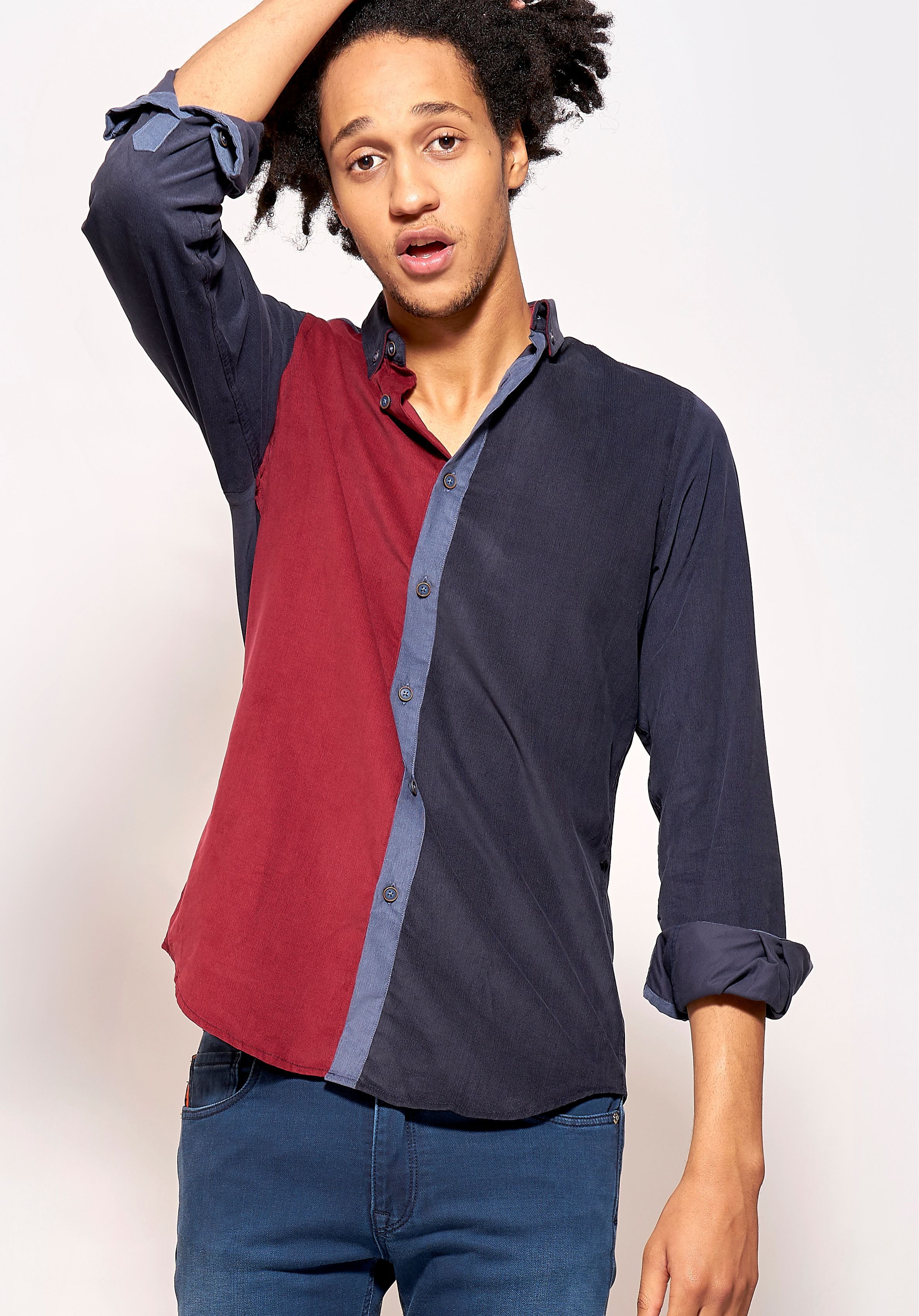 Tejido 100% algodón. Slim fit. Diseño combinado colores. Cuello camisero. Cierre de botones. Manga larga.
